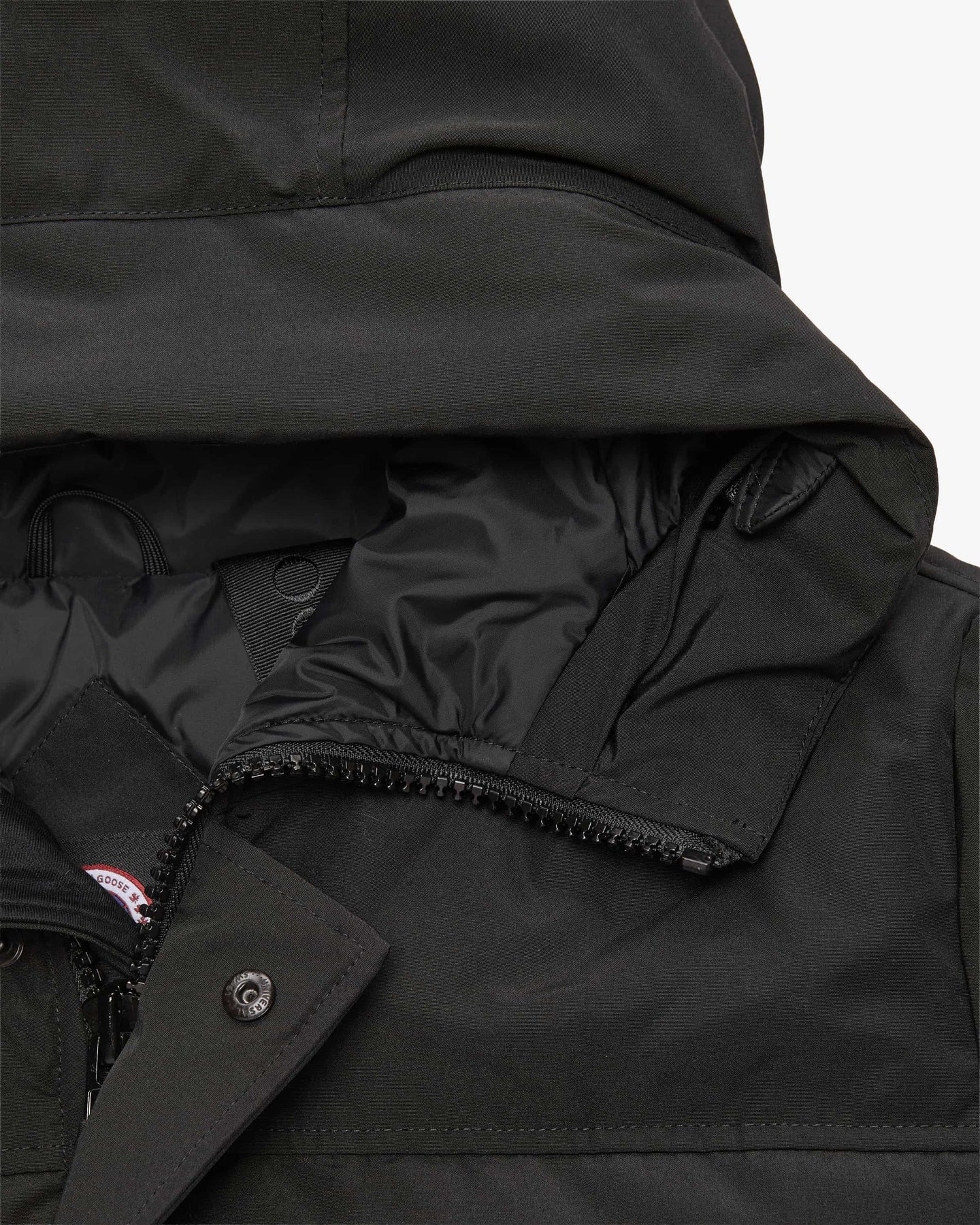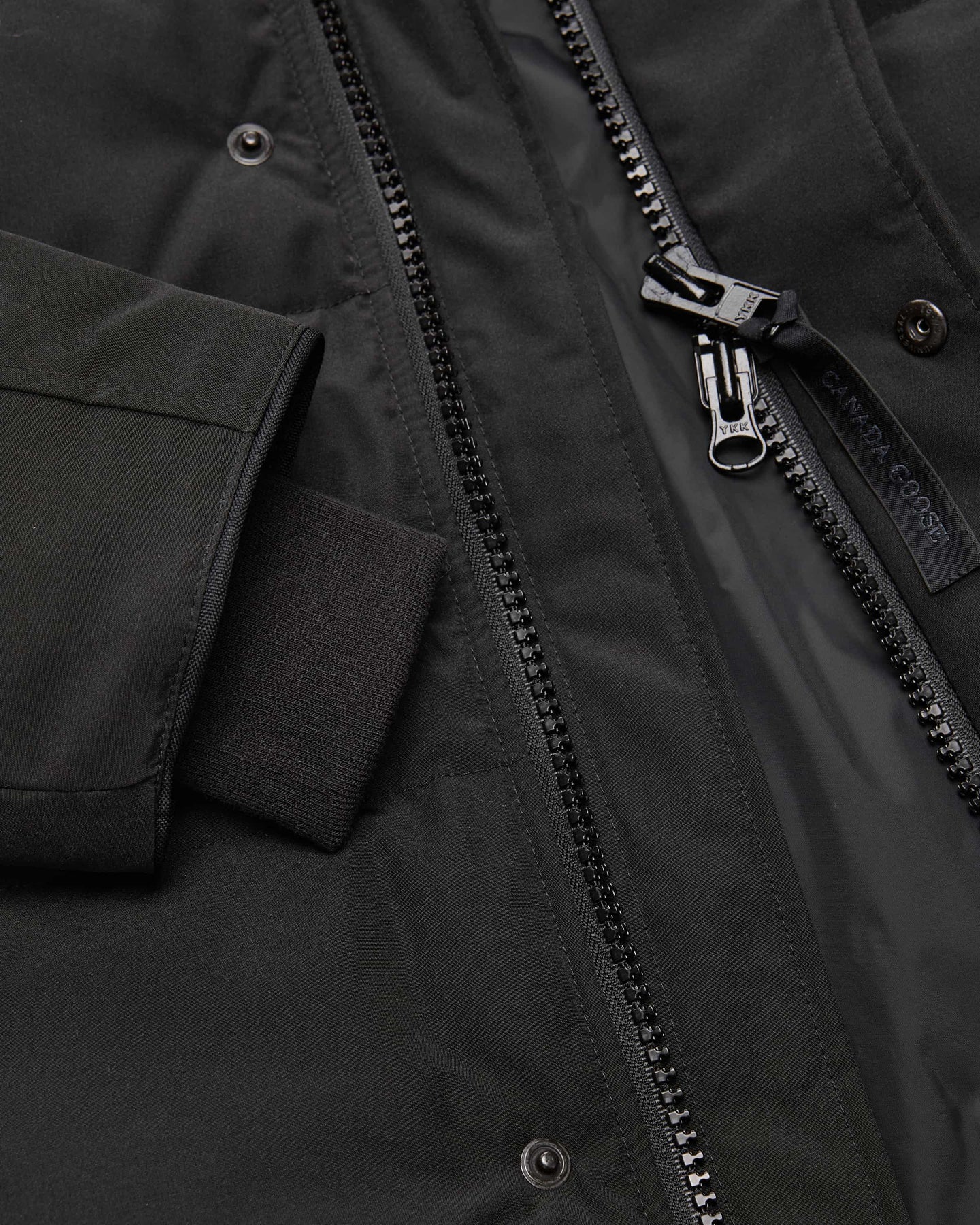 MacMillan Daunenjacke für Herren von Canada Goose in Schwarz. Zweckmäßiges Design, orientiert an den rauen Bedingungen der Arktis, ist der Grundstein für alle Kollektionen von Canada Goose. Dieses legere Modell überzeugt dank matter Steppung in angesagter Parka-Optik, während die hochwertige Daunen-Feder-Füllung optimalen Schutz vor Kälte verspricht. Zugleich ergänzen der hochgeschlossene Kapuzenkragen sowie die innenliegenden Schulterriemen die Winterjacke funktional.